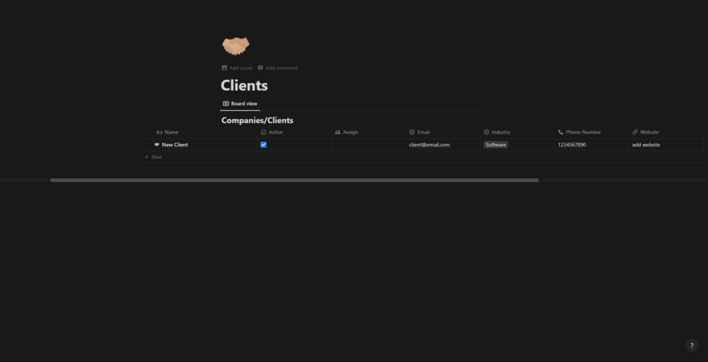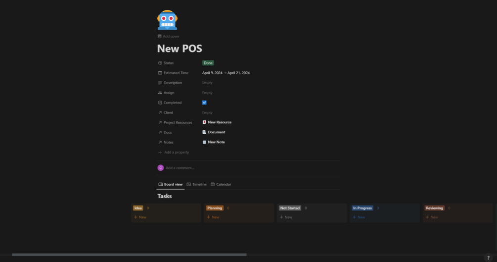 This template will help you organize your projects, manage its tasks, register your clients, resources, and even save notes.